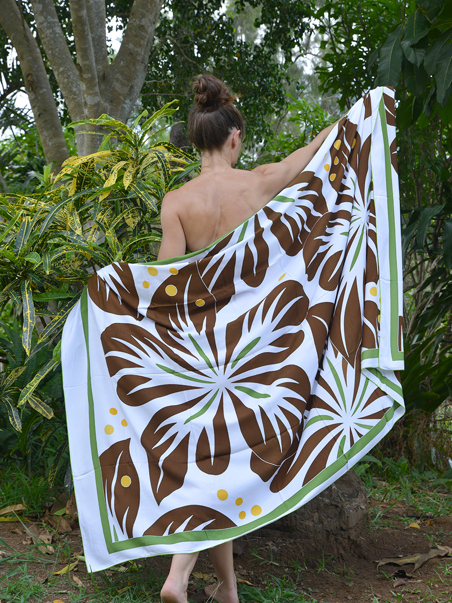 Paréo aux motifs de fleurs peint à la main ; rayonne de qualité en 185 x 120 cm. 6 variations de couleurs disponibles